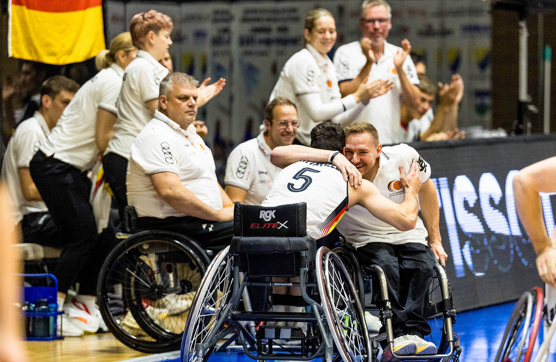 Die Stimmung unter den Fans und den Spielern in der Hotel Hills Arena war entsprechend ausgelassen. Nach dem souverän herausgespielten 79:60 (21:14. 42:24, 62:47) über Italien hatten die deutschen Spieler auch allen Grund dazu. Nach Bronze bei den Paralympics in Paris im letzten Jahr, gab es wie zuletzt 2017 Edelmetall bei einer Europameisterschaft –insgesamt das sechste Mal EM-Bronze für die Herrenauswahl.