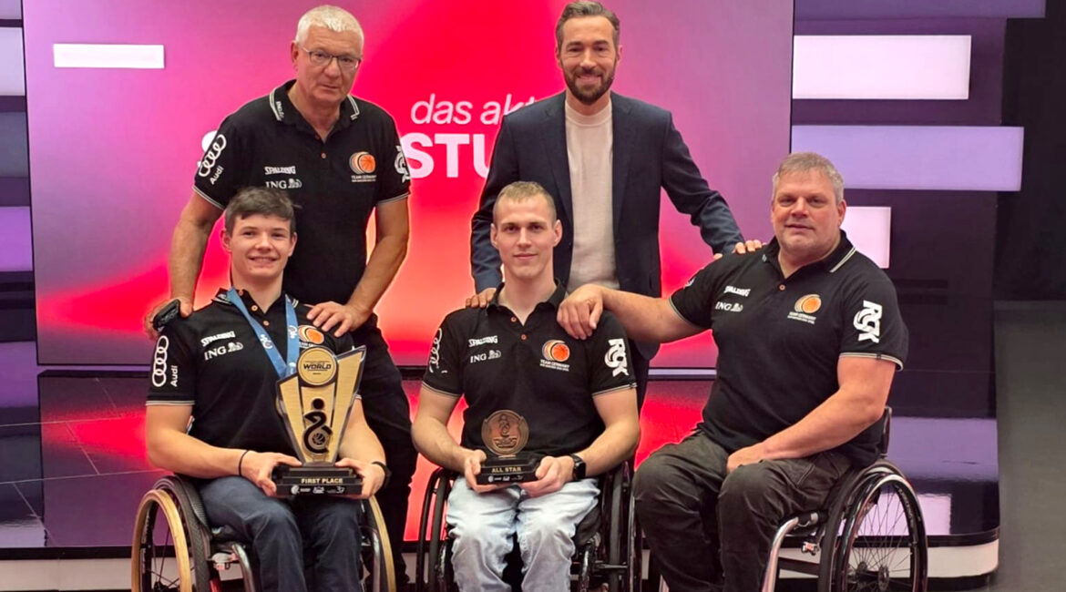 Es war ein besonderer Abend für die Vertreter der U23-Nationalmannschaft: Im ZDF-Sportstudio‹ durften Dominik Langer, Alexander Keiser, begleitet vom Trainerteam Peter Richarz und Günther Mayer, stellvertretend für das gesamte Weltmeisterteam den Pokal für das ›Para Team des Jahres 2025‹ entgegennehmen, ebenso wie die beiden Einzelgewinner Josia Topf und Johanna Recktenwald.